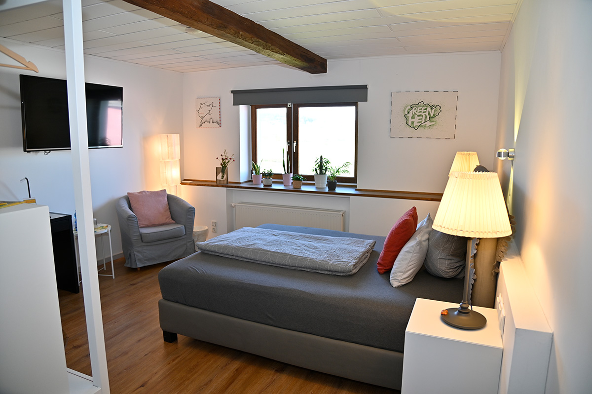 Herzlich, gemütlich und voller schöner Momente Mein Partner und ich waren am Wochenende zu Rock am Ring 2025 dort und wurden von Erich herzlich empfangen. Auch seine Frau Jana und die Familie waren mega herzlich und offen. Das Zimmer war klein und gemütlich – genau so, wie ich es mir vorstelle. Die Natur rundherum ist einfach traumhaft. Wir hatten viele lustige und schöne Momente zusammen, die den Aufenthalt noch unvergesslicher gemacht haben. Nach dem Festival war das der perfekte Ort zum Entspannen und Auftanken. Wir kommen bald wieder und freuen uns schon sehr darauf, die Eifel weiter zu erkunden!